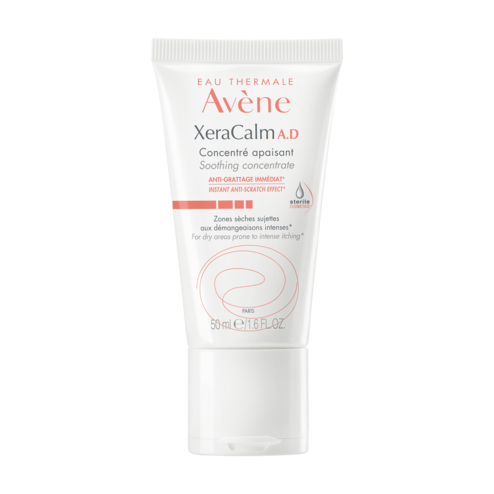 XeraCalm A.D Soothing Concentrate lindrer umiddelbart tørre områder utsatt for intens kløe og atopisk eksem. Dette er SOS-behandlingen for umiddelbar kløedempende virkning, takket være formelen som kombinerer I-modulia®, den første post-biotiske aktive ingrediensen avledet fra Avène Thermal Spring Water som reduserer kløe, stimulerer hudens forsvar og bekjemper irritasjon med en veldig konsentrert, beskyttende og reparerende kompleks som reduserer alvorlige topper av tørrhet for å gjenopprette hudens komfort, og Avène Thermal Spring Water som er naturlig beroligende, mykgjørende og irritasjonsdempende. Ideell for tilbakevendende kløende områder som ansikt, kropp og øyelokk. Takket være Sterile Cosmetics®, en unik teknologi som holder produktet sterilt gjennom hele bruken og en eksklusiv beskyttende innpakning som er perfekt hermetisk, garanterer denne SOS-behandlingen sikkerhet og optimal respekt for huden og hudens mikrobiom. Konserveringsfri, parfymefri, ikke-komedogen, formulert med et minimum av ingredienser og designet for å minimere risikoen for allergiske reaksjoner, XeraCalm A.D Soothing Concentrate er ideell for huden til spedbarn, barn og voksne.